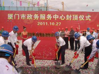 2011年10月22日,集团代建的市政务服务中心项目完成主体封顶,比计划预计的10月底封顶提前了一周时间。2011年10月27日上午,厦门市常务副市长丁国炎、市政府副秘书长林德志、市纪委副书记黄家列,以及市财政局、市委编办、市机关事务管理局、市信息化局、市发改委、市建设管理局、市商务局、市工商局、市交通运输局、市国土房产局、市人社局和市效能办等相关部门领导参加了市政务服务中心项目封顶仪式。