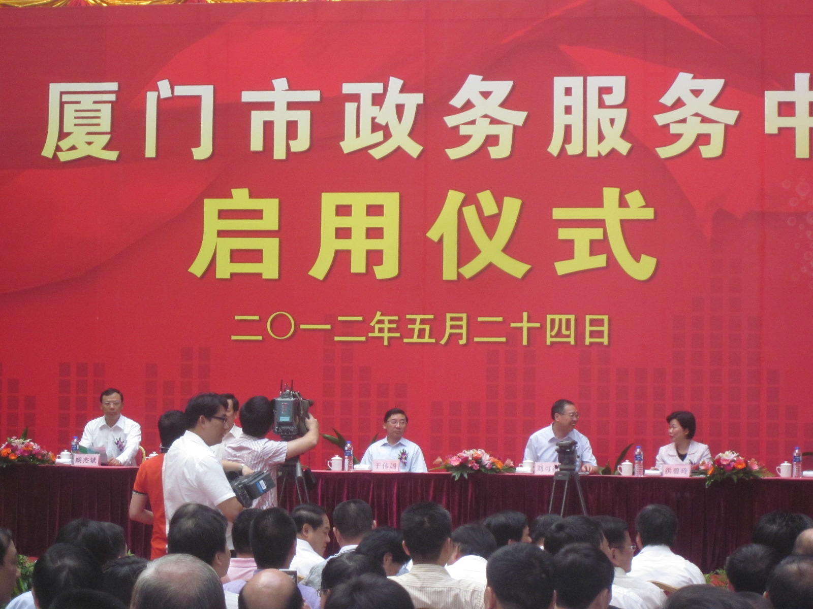 由集团代建的厦门市政务服务中心于5月24日早上举行启用仪式,省委常委、市委书记于伟国,市长刘可清,市人大常委会主任郑道溪共同开启启动球,宣告中心正式启用。于伟国书记要求,要按照程序最简、时间最短、审批最快、服务最便利的要求,深入推进行政审批制度改革,把政务服务中心建设成为服务市民、企业和社会的优质、高效、公正、便利的服务平台,成为展示厦门良好形象的重要窗口。市领导洪碧玲、臧杰斌、林国耀、魏刚等出席启用仪式。集团党委书记、董事长杨贤平陪同参加启动仪式。 刘可清市长在启用仪式上致辞。他说,建设市政务服务中心,有利于深入推进行政审批制度改革,对进一步提升政务服务水平,完善服务型政府建设具有重大意义。作为集政务公开、电子政务和行政审批于一体的综合服务机构,中心要紧紧围绕市委提出的“效率更高、服务更好、基层企业和群众更满意”的要求,牢固树立争创一流的工作理念,努力创造一流的效率、一流的服务、一流的管理。 市政务服务中心项目自去年5月10日开工,今年4月25日上午正式移交,集团代建项目部在集团和万银公司领导的有力领导下以及集团有关职能部门的指导与配合下,与参建各方克服工期紧、任务重等问题,科学组织、精心管理、抢抓工期,注重质量和安全,顺利提前完工交付使用,创下了厦门新的建设速度,受到省市领导的高度评价,得到了相关单位及社会的一致好评。市政府服务中心除车驾管办证大厅、口岸联检大厅、出入境办证大厅以外,市级所有行政审批服务项目都将进入市政务服务中心集中办理。据悉,目前已有72个部门入驻国土房产、建设、经济、社会保障、社会事务等服务大厅,加上银行、邮政等配套服务单位,共有81个部门1000多名工作人员进驻。政府采购、土地招拍挂、工程招投标等公共资源交易区的9个单位下月也将进驻。“一站式” 审批服务,极大地方便了企业、群众办事。其促进提高政务服务水平的窗口作用已初步显现。