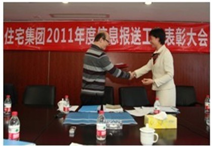 3月19日上午,集团在20楼大会议室召开2011年度信息报送工作表彰大会,集团党委副书记、总经理苏玉荣为2011年度信息报送工作中涌现出的先进单位和个人代表颁奖。自2011年初建立信息报送工作制度以来,集团信息报送量一直稳居国资系统前列,所刊发的《住宅通讯》的影响力亦在不断扩大。