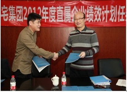 3月19日上午,集团2012年度直属企业绩效计划任务书签字仪式在20楼大会议室举行。集团党委副书记、总经理苏玉荣代表集团经营班子分别与各直属企业法人代表签订2012年度绩效计划任务书。此前,业内人士纷纷预言新年度房地产市场形势不容乐观,但集团各直属企业均表示将迎难而上,确保年度绩效计划的圆满完成。集团副总经理王水育主持签字仪式,并借用温家宝总理在“两会”期间的一句讲话与参会人员共勉,他说,今年可能是最困难的一年,也可能是最有希望的一年!