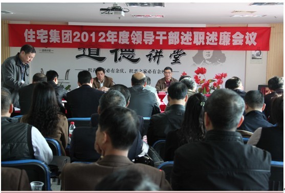 2月1日上午,集团在8楼多功能厅召开2012年度领导干部述职述廉会议。市委组织部副部长石牵助率组织部及国资委相关处室工作人员组成的考核小组莅会指导并作动员讲话。会议由集团党委书记、董事长杨贤平主持。 会上,杨董代表集团领导班子,从党建、中层干部队伍建设、生产经营工作等方面展开述职述廉。2012年,集团领导班子始终围绕坚持“一个确保”、做到“两个提升”的工作总要求,团结带领集团上下积极作为,超额完成了全年生产经营计划。集团全年实现商品房销售44.77亿元(回款39亿元),同比增长81% ;代建工程管理费收入5717 万元,同比增长125%;偿还贷款16.6 亿元,同比增长55%。杨董指出,集团目前仍然存在如产业单一、抗风险能力较弱、企业文化建设亟待加强、干部队伍断层现象亟待解决等问题,并表示,2013年集团领导班子将更加注重党组织和领导班子的自身建设,更加注重企业制度与流程的改进,更加注重企业人才队伍的优化,更加注重企业文化的打造,更加注重党风廉政建设,更加注重企业发展的质量,精心谋划、周密部署、团结拼博、功坚克难,努力做到提升工作效率、提升经营效益,确保国有资产保值增值,确保集团健康、稳定、持续又好又快地发展。 与往年不同的是,本次会议不要求领导班子成员逐一述职述廉,而是采取网络公示述职材料的方式接受职工群众监督评议。考核小组向与会人员发放《住宅集团领导人员年度考核测评表》、《2012年新选拔干部民主评议表》、《干部选拔任用工作民主评议表》、《干部推荐表》收集民意,并分四个小组和参会人员逐一谈话,对集团领导班子及成员进行深入、细致地考核。