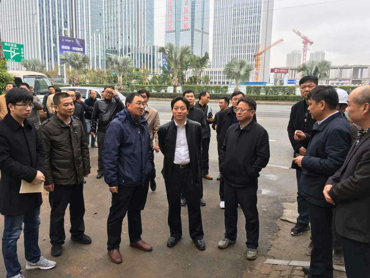 2月26日上午,湖里区区委书记林建、区长徐国庆等领导率区人大、政协及区宣传部、建设局、发改局、财政局、市政园林局、执法局、城管办、交警大队及各街道负责人莅临特工公司代建的立面提升工程第九标段金林社区两违拆迁现场调研指导工作。特工公司杨建明总经理、邓长泰副总经理参加了调研,并向林书记等领导汇报了目前金林社区违建拆除面临的问题,希望区委区政府加快统筹解决“两违”拆迁工作,并就影响外架搭设的民房碰窗问题制定一揽子方案,以便全面铺开工作面。 调研结束后,杨建明总经理、邓长泰副总经理在现场召集设计、施工、监理等单位负责人,进一步讨论图纸优化提升方案。经过反复协商后,三方代表当场在效果图上签字确认。