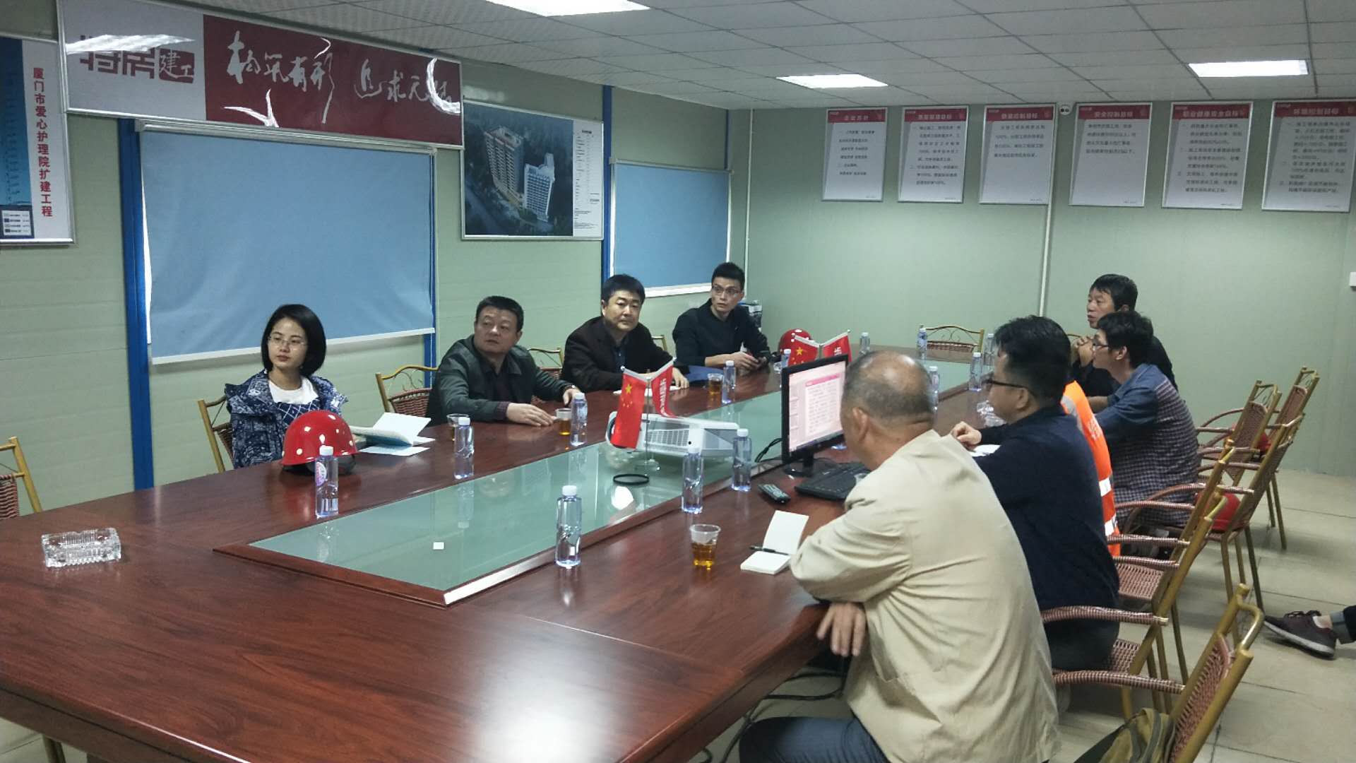 东区公司爱心护理院代建项目负责人向上级领导汇报了目前工程进展情况、投资情况并分析项目滞后原因。李龙副局长肯定了项目部的辛勤付出,并要求项目部要提前计划好下步工作,控制投资,在确保安全文明的情况下加快工程进展,尽快把这项民生工程交付社会使用。爱心护理院前一阶段面临石方开挖困难,项目部想方设法攻坚克难,目前石方工程基本开挖完成。