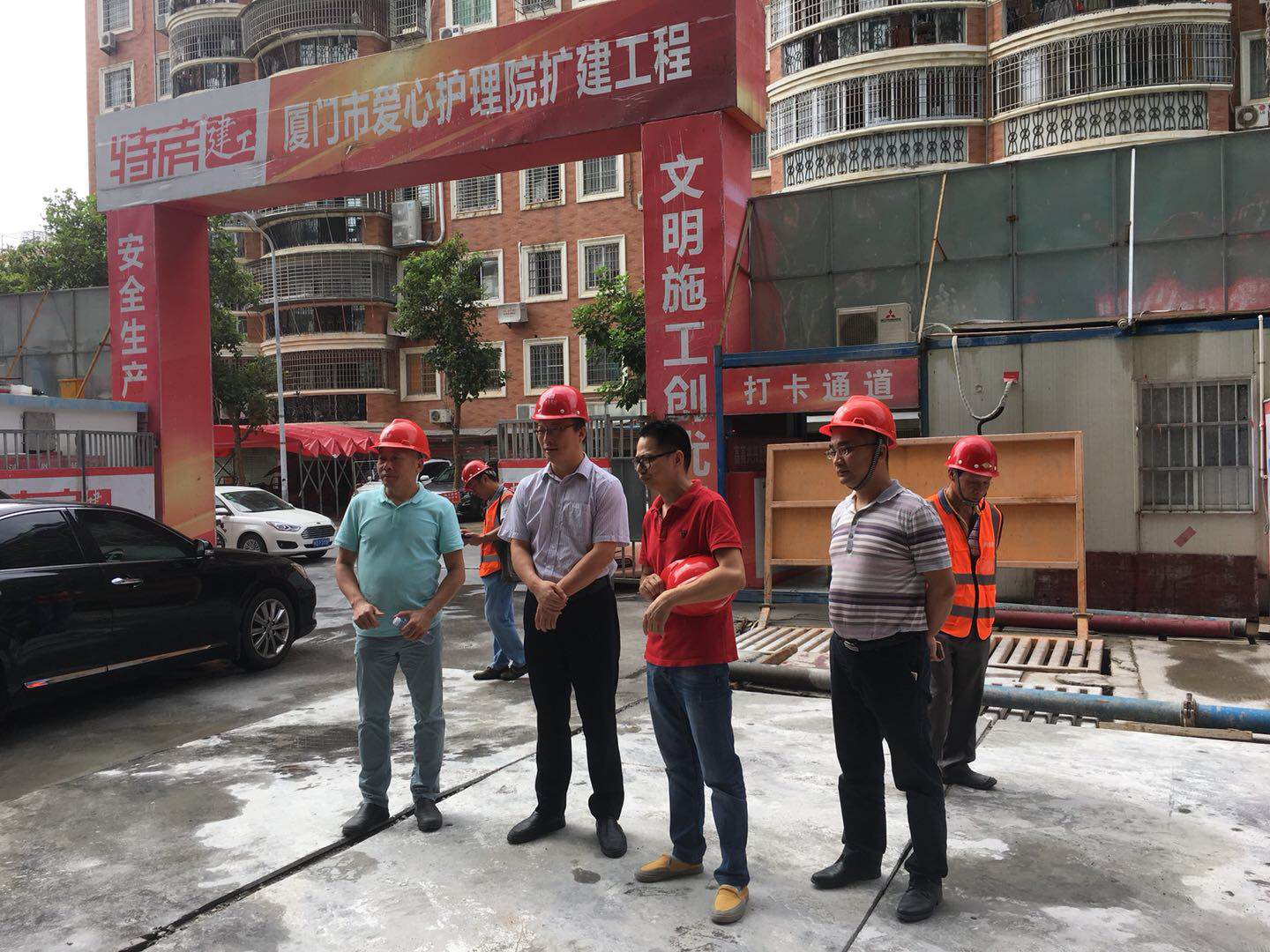 6月8日上午,集团党委副书记、总经理苏玉荣,带队到东区公司代建的爱心护理院扩建工程实地调研项目进展情况。 苏玉荣总经理听取了项目工作进展情况汇报,以及在工作过程中遇到的困难和解决方案。苏总强调,爱心护理院扩建工程是一项民生工程,能够真正实现“老有所居、老有所养、老有所终”。要以高度的责任感和使命感抓好建设项目安全文明施工和质量监管工作,始终把安全文明施工和工程质量作为一项贯穿项目始终的重中之重工作来抓。同时在施工期间要协调好与周边居民的关系,在不影响居民的生活起居、保证安全生产的前提下,加快工程建设进度,严格按照既定的工作计划目标,按时完成工程关键节点,尽快交付业主使用。 目前爱心护理院扩建工程主体结构已施工至15层梁板,预计本月封顶,并完成1-8层砌体施工、设备采购招标文件编制。