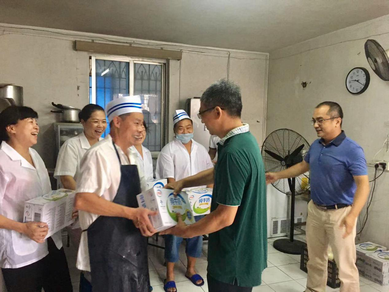 7月23日大署节气,正值夏季最热的时节。集团党委委员、副总经理王水育率行政与人力资源部经理施旌、工会女职工委员会主任朱萍萍等,前往集团机关食堂开展送清凉慰问活动,送去防暑降温慰问品,亲切慰问在设施简陋的高温环境下紧张有序忙碌操作的食堂师傅们。