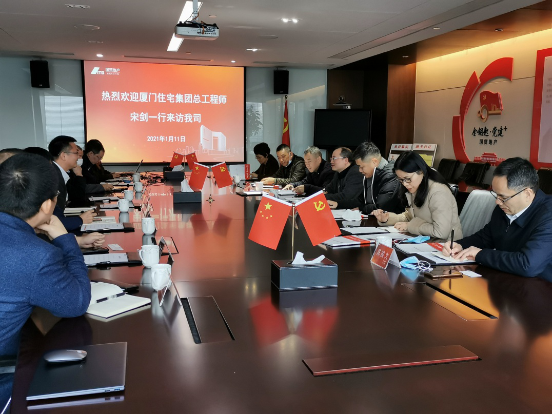 2021年1月11日上午,集团总工程师宋剑带领集团经营部、产品技术部、工程管理部、成本控制部及特工公司、东区公司的主要负责人前往国贸地产,就公开招标背景下商品房项目竞得后如何实现快周转目标等进行学习交流。国贸地产总经理林希率国贸地产经营班子主要领导及相关业务部门负责人参加交流会。 会上,国贸地产相关负责人分享了现阶段国贸地产在公开招投标前提下,通过“早起跑、串改并、控周期”等措施确保商品房项目竞得后在公开招投标的前提下确保实现12月开盘的经验做法,国贸地产目前正在通过进一步探索“放管服、优激励”等措施在部分项目上实现竞得地块后7个半月开盘。“早起跑”,即通过工作前置、策划先行,将原定工作提前开展,如竞地前将项目方案尽可能做到报规深度等;“串改并”,即将部分串联工作通过业务流程优化改为并行的工作,从而节省节点工作时间,如通过桩基前行,在桩基施工的同时并行进行上部主体施工图设计及主体总包单位招标,从而确保竞得地块后7个月完成地下室主体结构工程,为确保竞得地块12个月开盘打下良好基础;“控周期”,即在保障合理工期的前提下,控制阶段性工作(如开盘、封顶)等关键节点的工期和周期,为助力项目早开盘打下坚实基础。 会上,住宅集团和国贸地产人员还就商品房开发全业务流程上的提高企业竞争力的其他关键因素进行交流。双方一致认为,在目前“房住不炒”“稳房价、稳预期”的大政策背景下,规模化、快周转是房地产企业提高竞争优势的核心目标,精准定位、标准化、提速降本是提高房地产企业竞争优势的主要手段,提速降本和标准化是实现房地产快周转开发的前提,只有精准定位才能实现快去化,才能实现商品房开发快周转、规模化的最终目的。