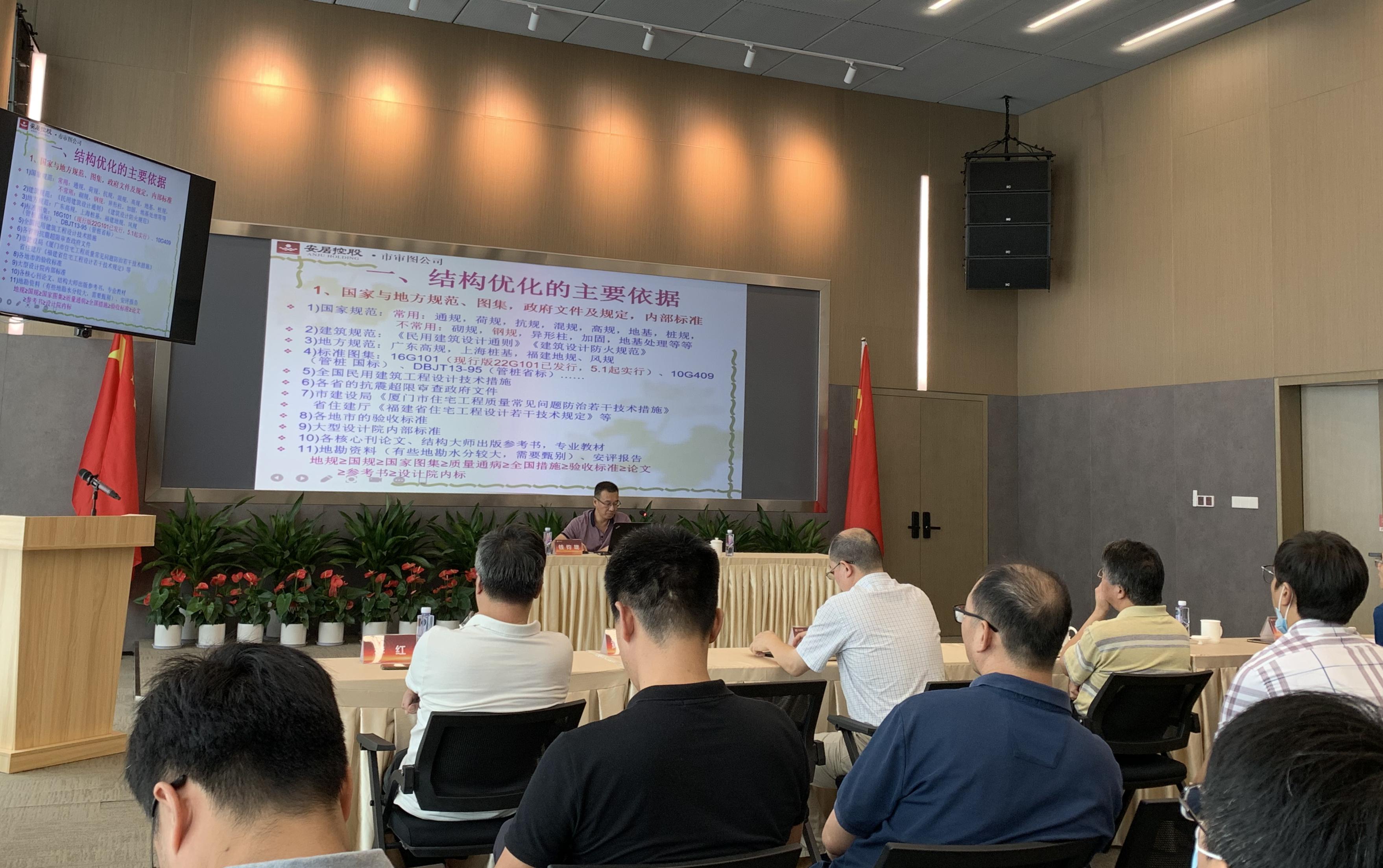 为进一步提高集团房地产业务降本增效的能力和水平,集团产品技术部在审图公司的协助下,于8月4日在集团大厦801会议室举办建筑结构选型优化技术培训。集团党委委员、副总经理李少波,总工程师宋剑出席会议。集团本部、相关直属企业工程技术人员以及战略合作设计单位结构设计人员参加培训。