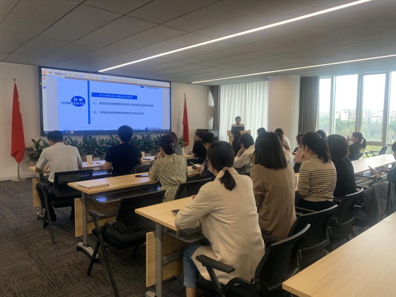 为贯彻落实省政府、市政府深化数字人民币试点工作部署要求,进一步优化完善集团资金管理体系,提高资金营运的安全性,11月1日上午,集团财务部在安居控股集团大厦507会议室组织开展数字人民币培训会。集团财务资金中心总监、财务部经理曾琦主持会议,集团财务部,安居集团、特工公司、东区公司、万翔同公司相关人员参加本次学习培训。 此次培训邀请了中国建设银行黄素英老师进行授课,课上黄老师从“对公钱包的基本概念及场景”“竞买企业使用数字人民币缴交土拍保证金”“中标企业使用数字人民币缴交土地出让金”三个方面详细介绍了数字人民币的定义、功能以及土地拍卖保证金、土地出让金等数字人民币业务缴纳的操作流程。参训人员认真学习,并结合公司实际与银行进行深入探讨存在的问题。 此次培训活动普及了数字人民币知识,有助于集团财务人员充分学习和了解数字人民币业务,为拓展数字人民币土地出让资金业务、探索数字人民币住房公积金贷款业务提供了方向。集团积极引入数字人民币,彰显国企担当,努力为推广数字人民币对公业务、全国数字人民币试点及福建金融科技基础设施建设贡献国企力量。